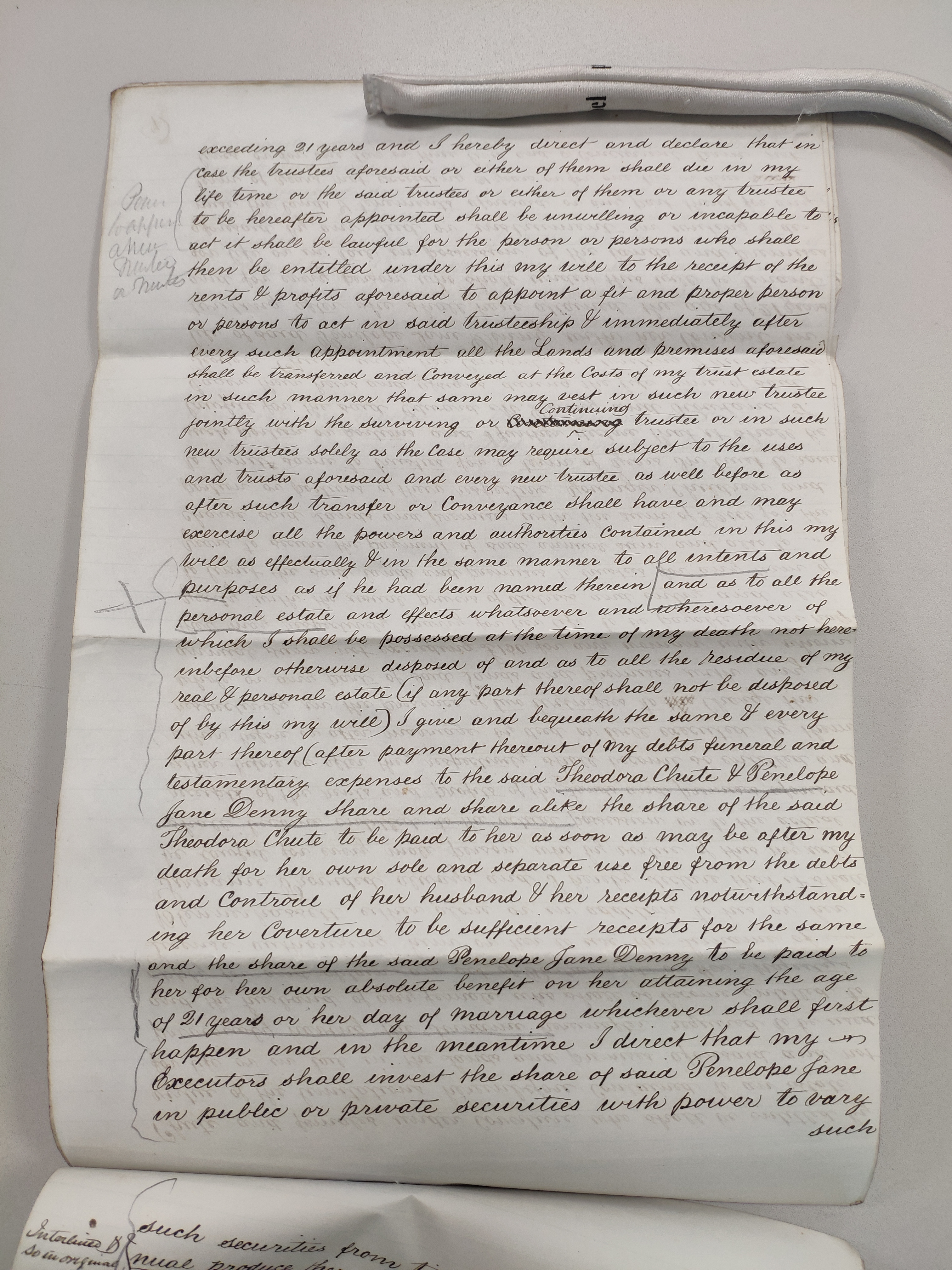 lists a large number of family members in line of succession to his property if lines ahead of them fail.