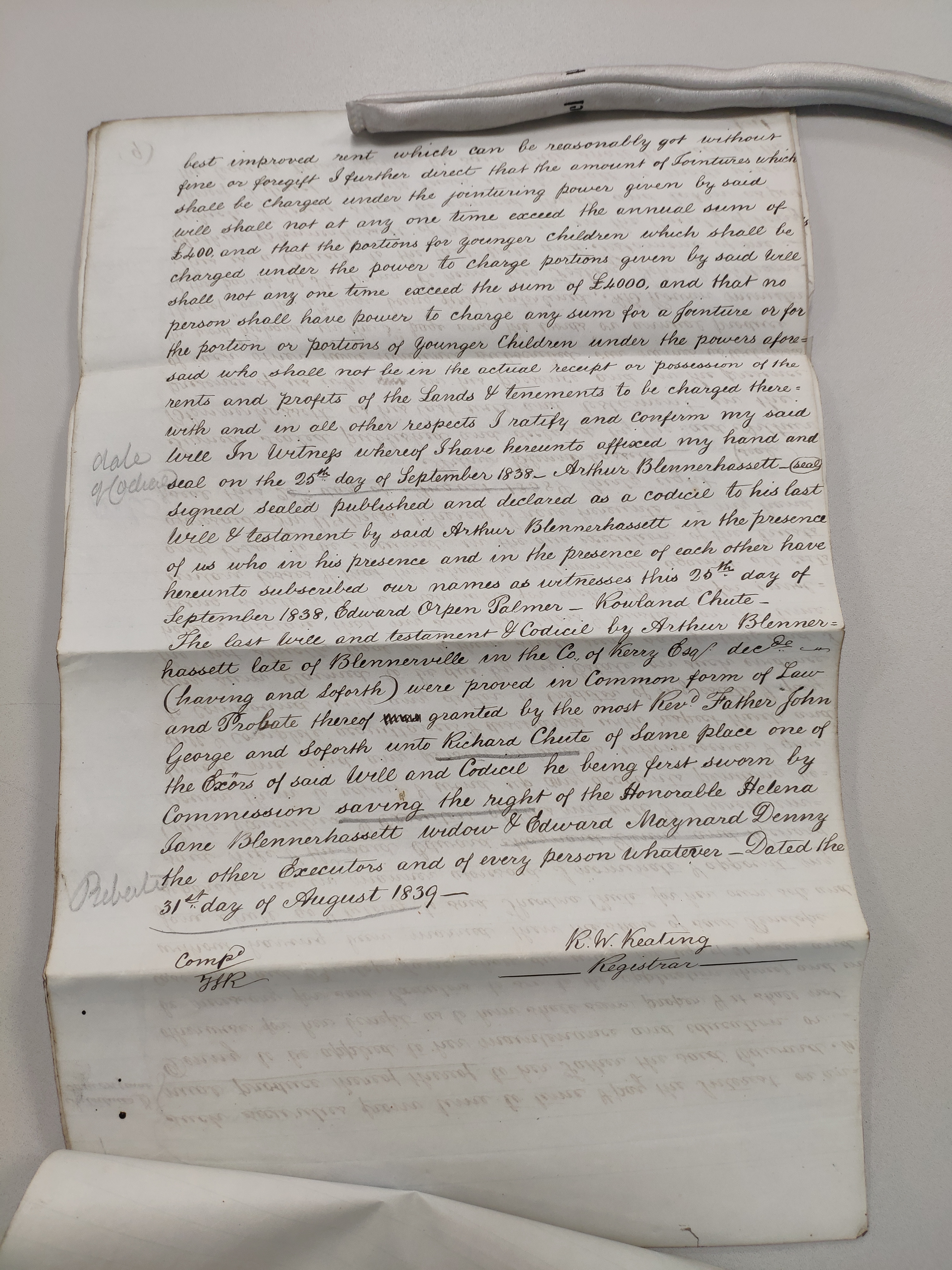 was witnessed by Arthur Blennerhassett of Dublin, attorney.