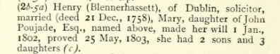 His will was proved 1816 (Henry of city of Dublin).