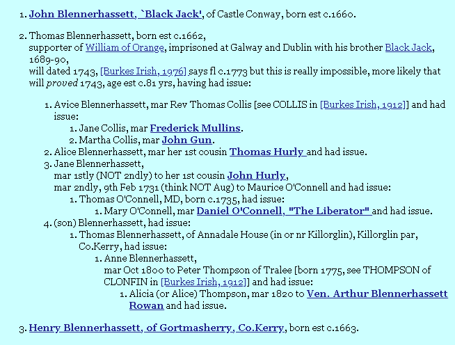 The likely lines (O'Connell and Leyne) are linked to Blennerhassett