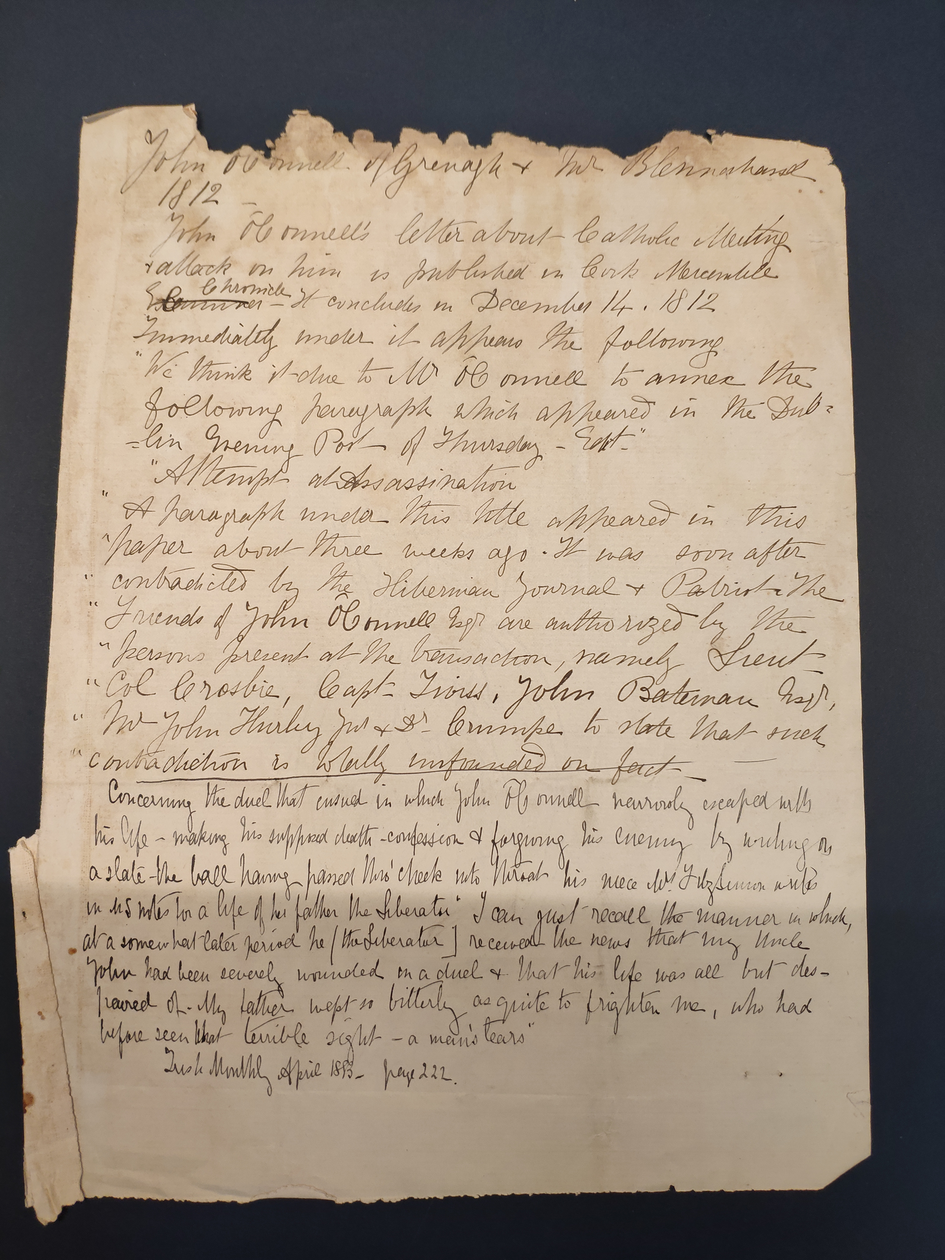 Article of 30 Jan 1813 says: "The families of the O'Connells and Blennerhassets had previously been on the most amicable terms."