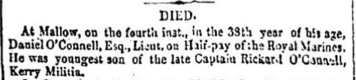 He died of cholera, Sun 3 June 1832, at his house, Day Place, Tralee.