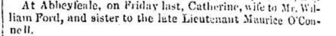 He mar 2ndly, 1817, to Mary Mahony and had issue.