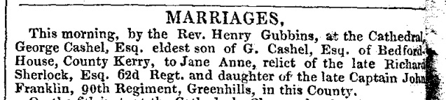 Showing Richard Sherlock who married Jane Anne Franklin who later married George Cashel.