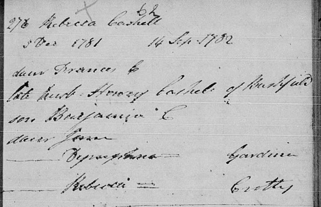 Rebecca dies, 1781: