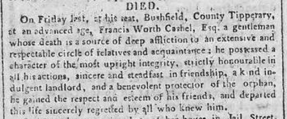 Henry Cashell, of Bushfield, Co.Tipperary