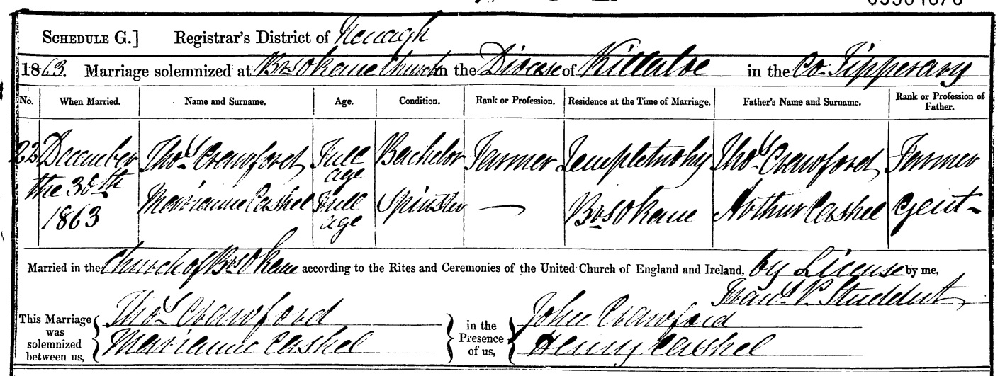 mar 30 Dec 1863 to Thomas Crawford [farmer, of Fortfield, Templemore, Co.Tipperary].