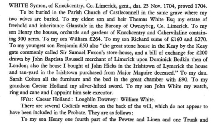 - History of the Family of White of Limerick, Knockcentry, Cappaghwhite, Lisowen, Kilmoylan, etc.,
