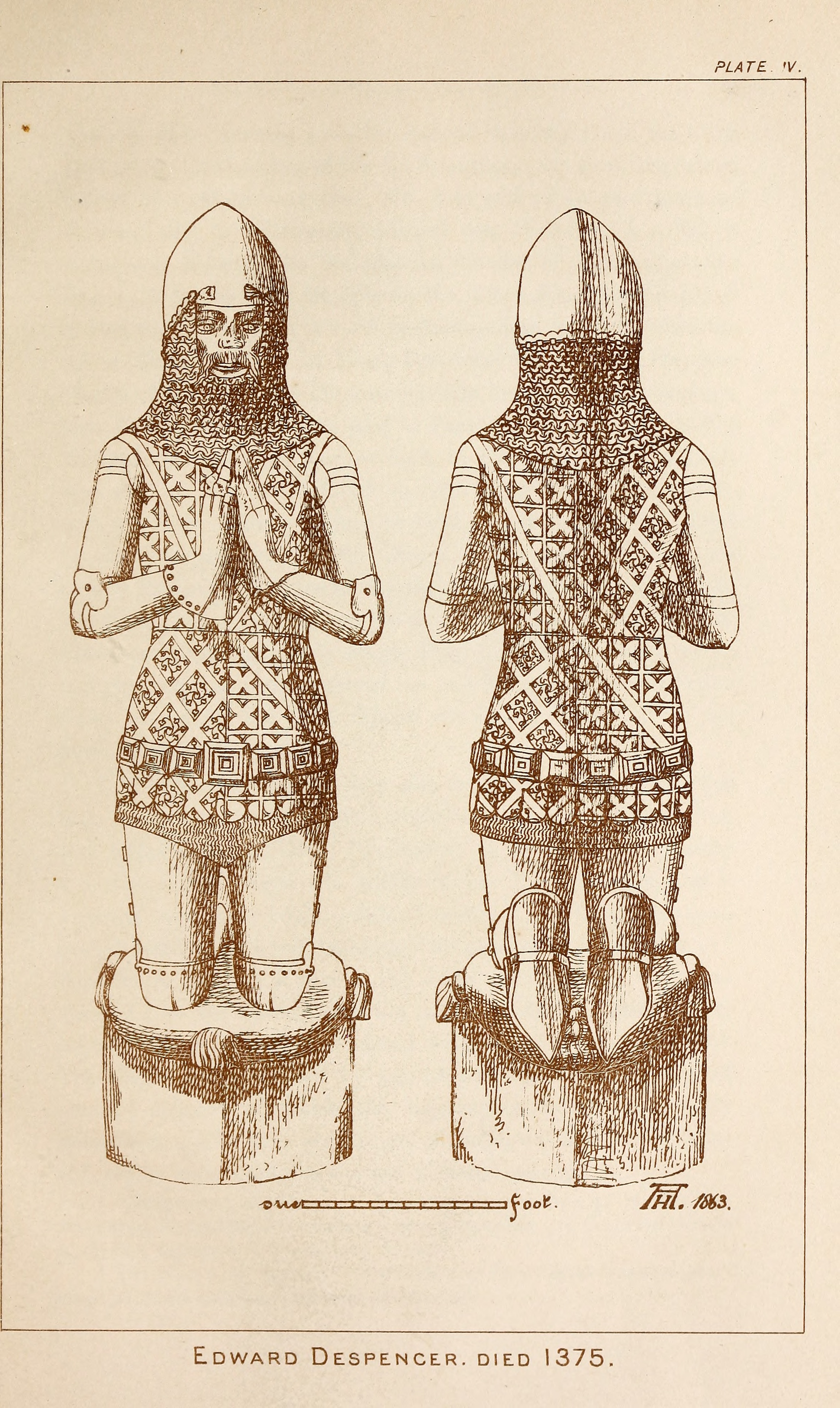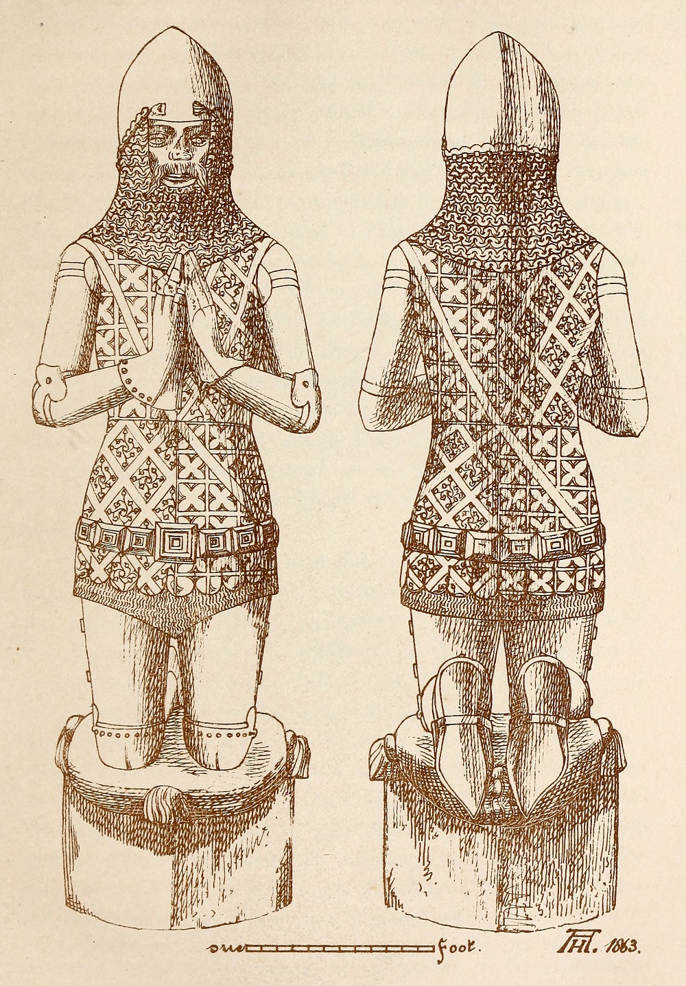 Sketch of the kneeling effigy of