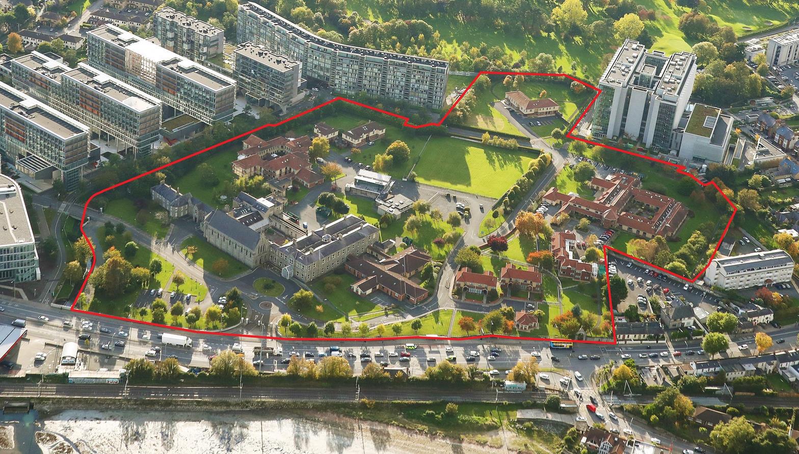 Site of castle is around the N end of the courtyard of St.Mary's School for the Blind.