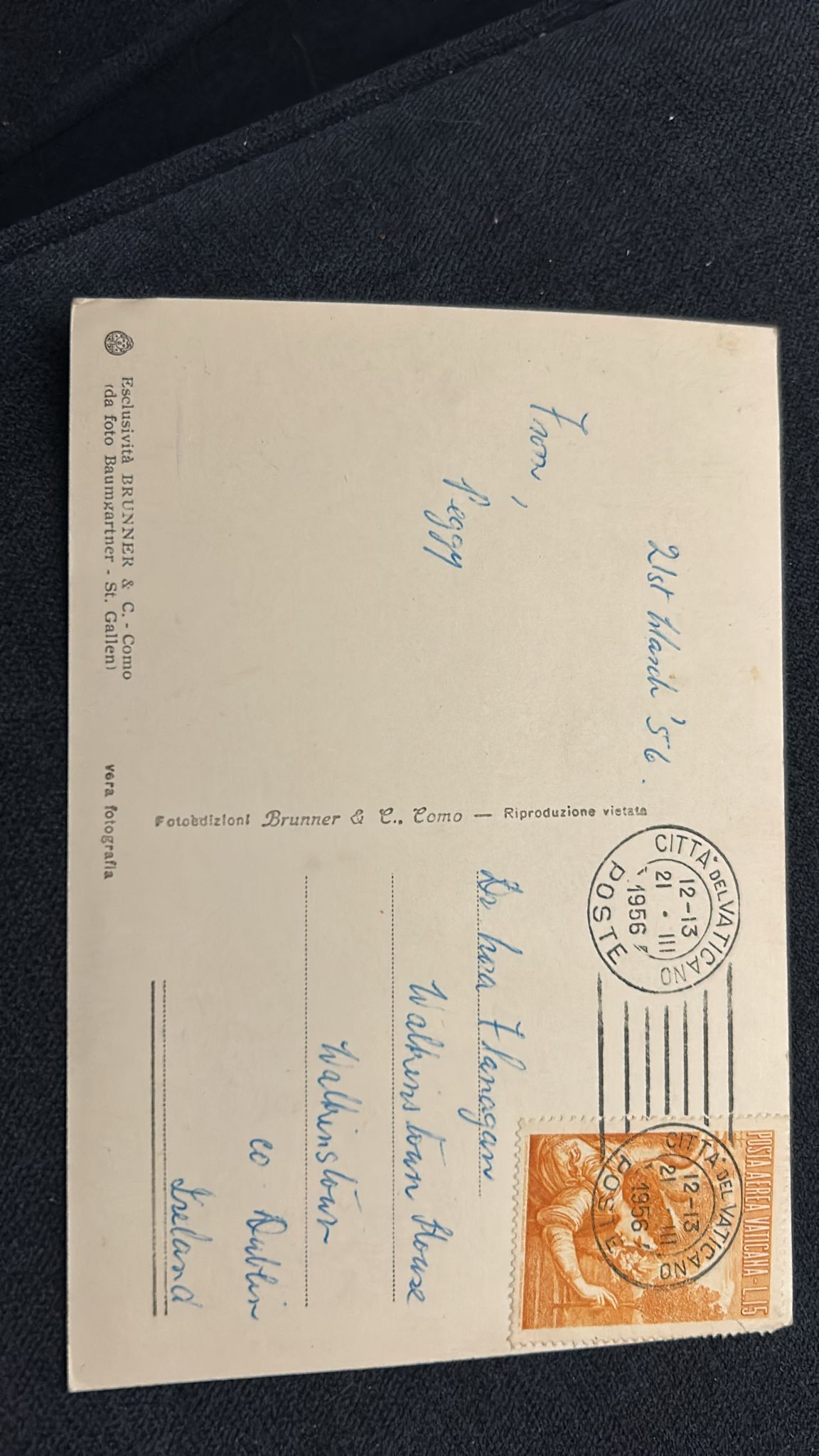 This must be Mar 1956, when Peggy sent a