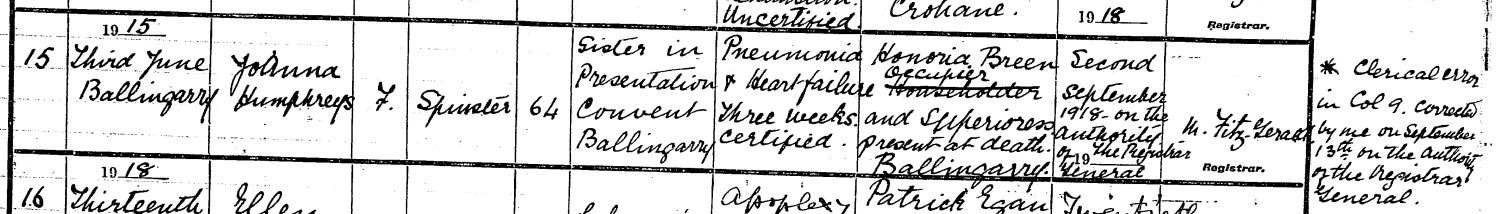 sp David Humphrys, Mary Humphrys [Murroe parish records].