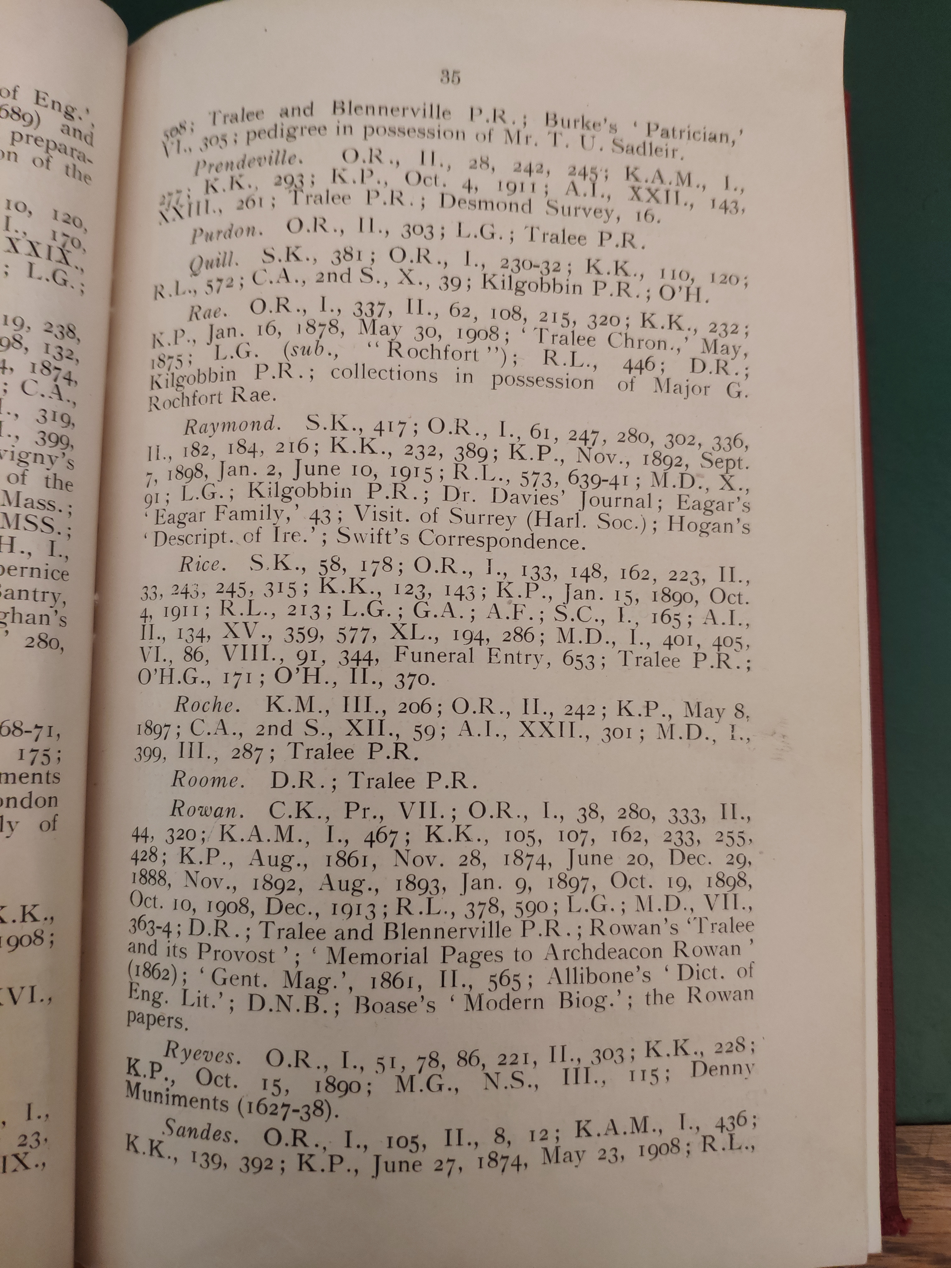 - Pedigrees of Rowan, [NLI] GO Ms 168, pp.254-60, 284-5, 425-8, microfilm POS 8302