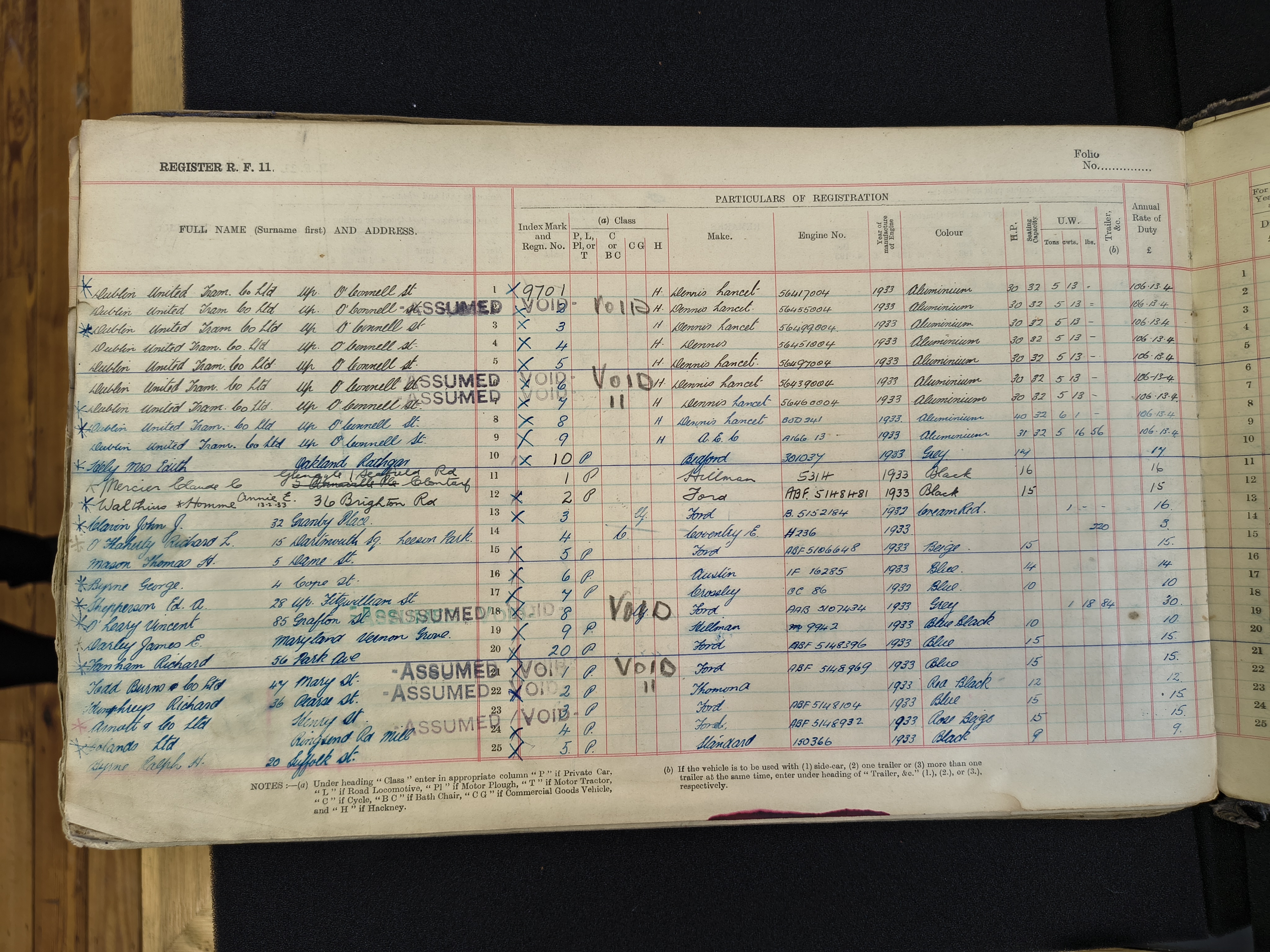 He says his Thomond lasted from 1929 to 1933, which we can see is true from its registration.