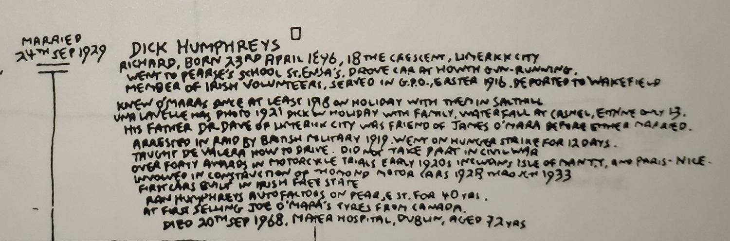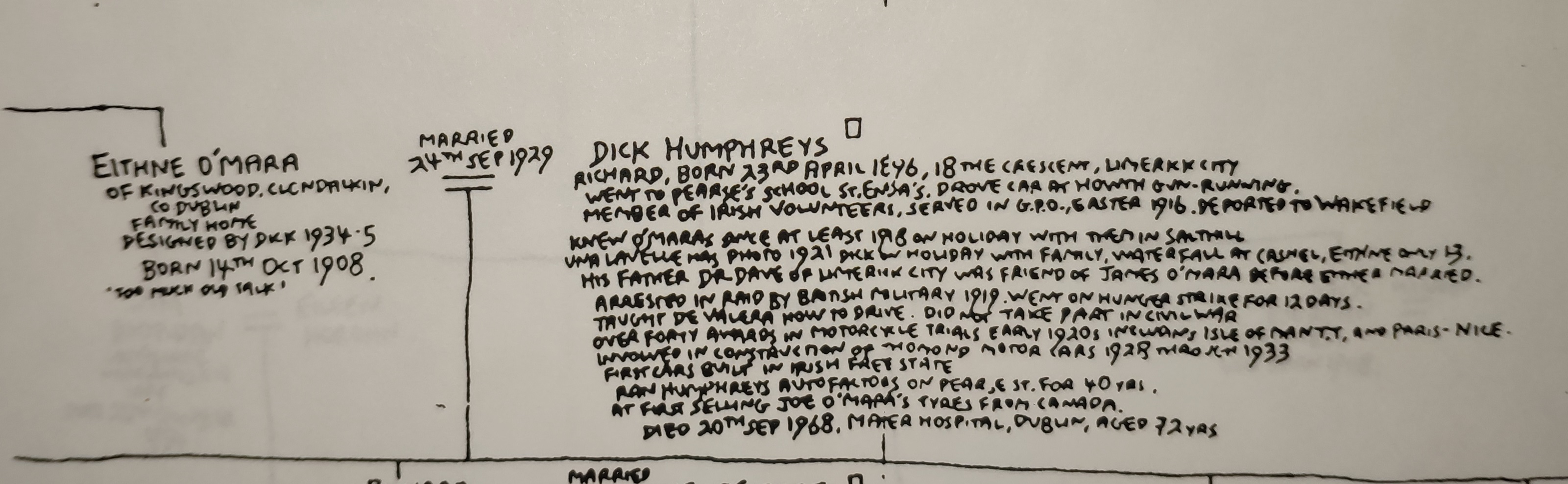 My hand-drawn family tree in 1983 to 1989, showing James O'Mara.