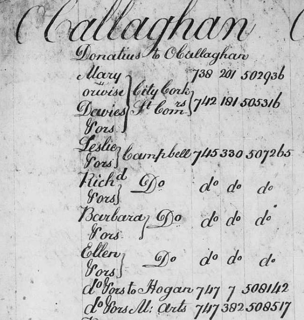 of Catherine dau of Daniel Callaghan.