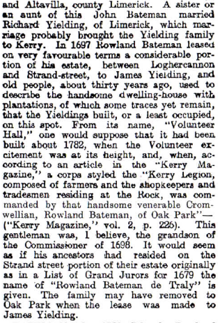 "Rowland Bateman" of Tralee is on a List of Grand Jurors in 1679