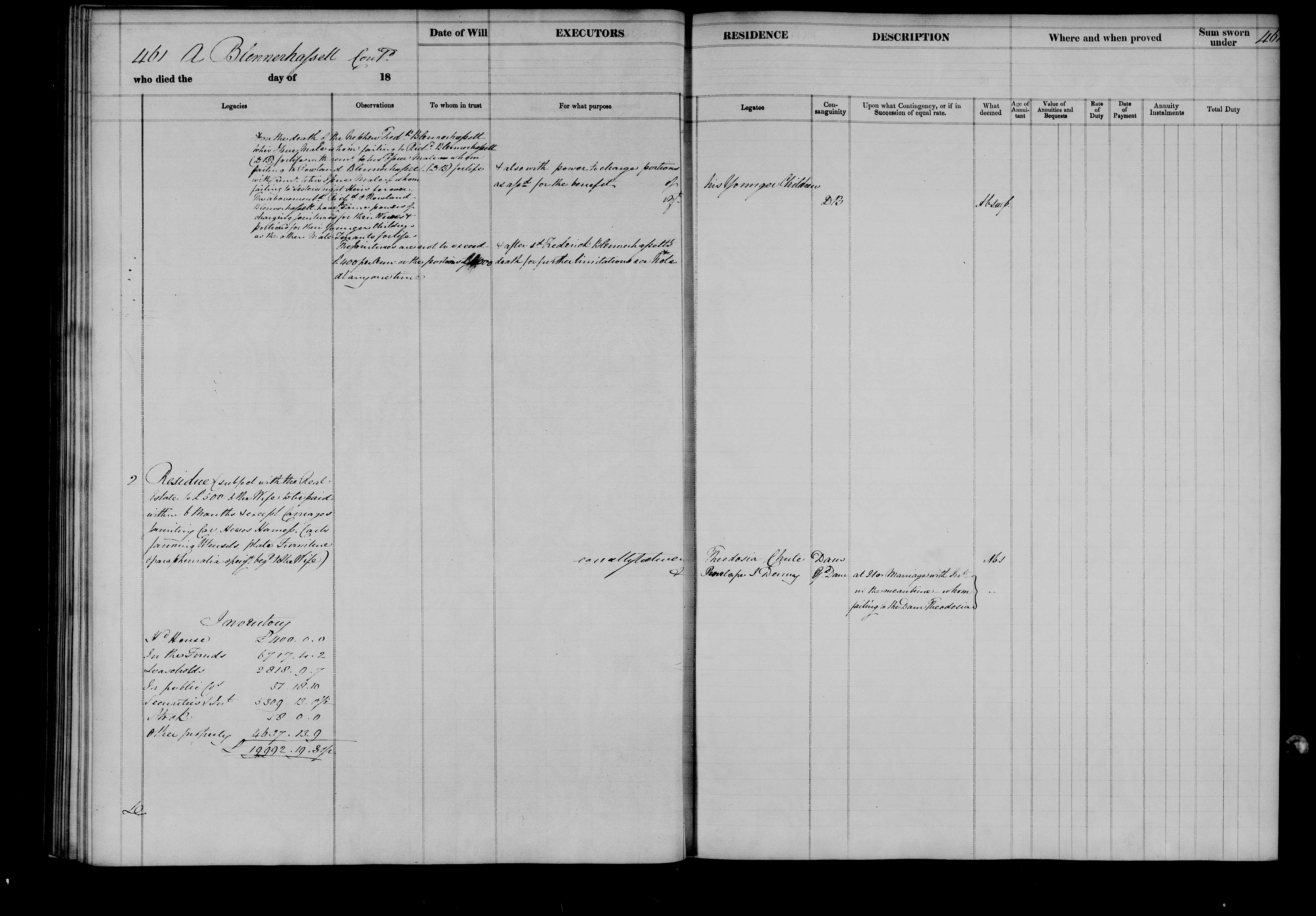 Executor Richard Chute. Residence Blennerville.