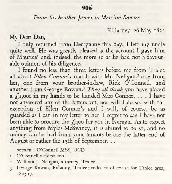Shows that Ellen is then engaged to William J. Neligan, attorney, Tralee.