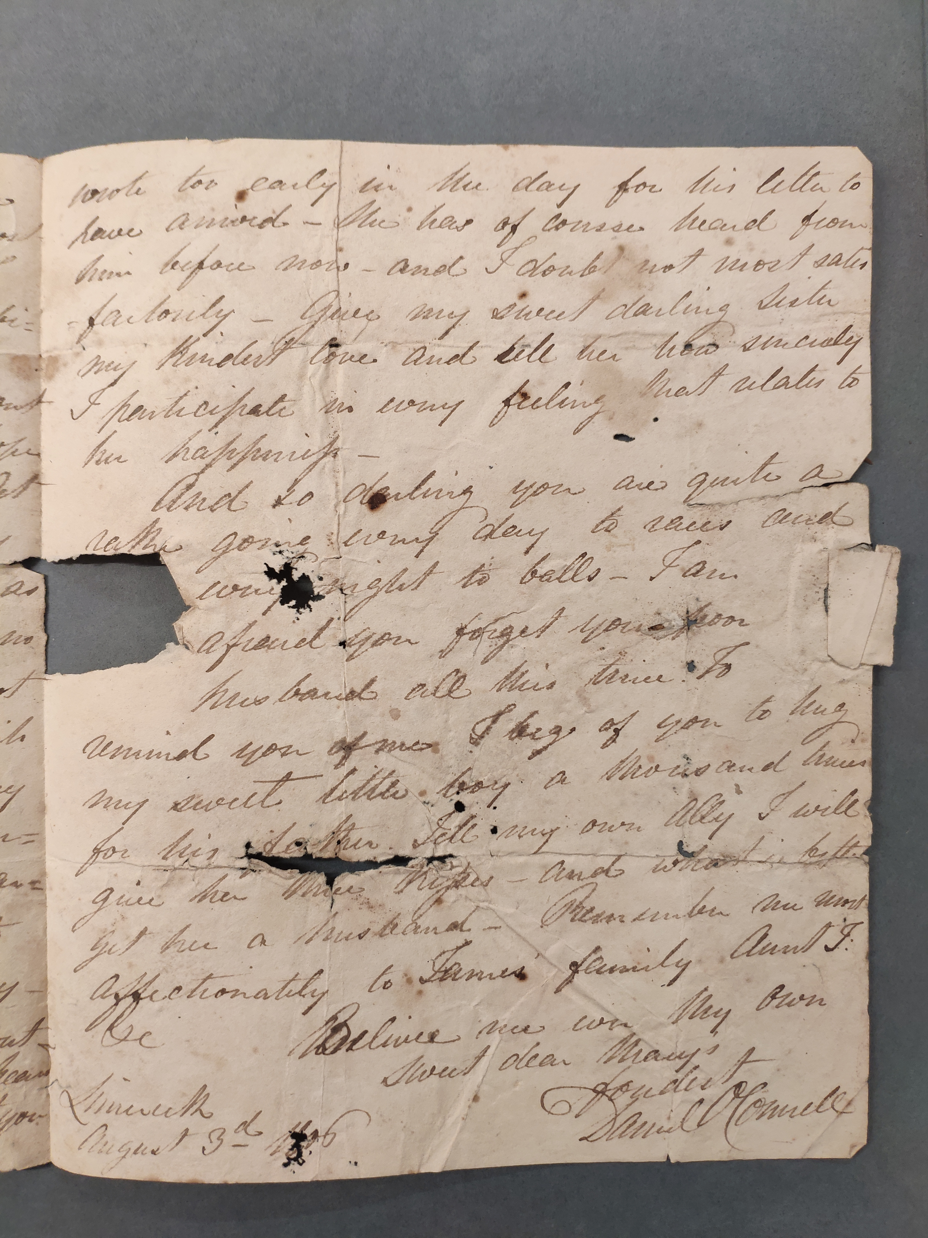 Daniel O'Connell to his wife Mary, 3 Aug 1806.