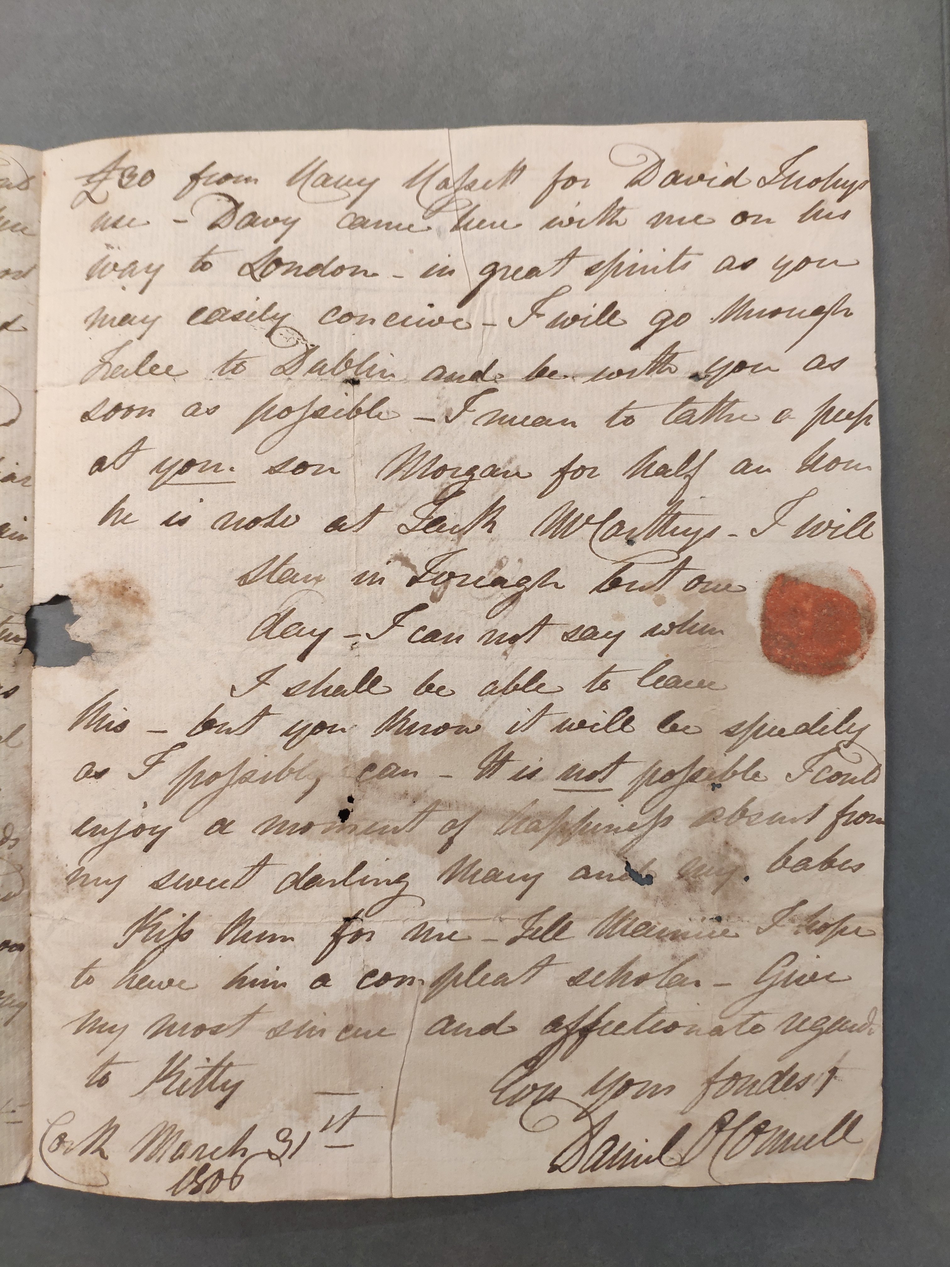 Daniel O'Connell to his wife Mary, 10 Mar 1806.
