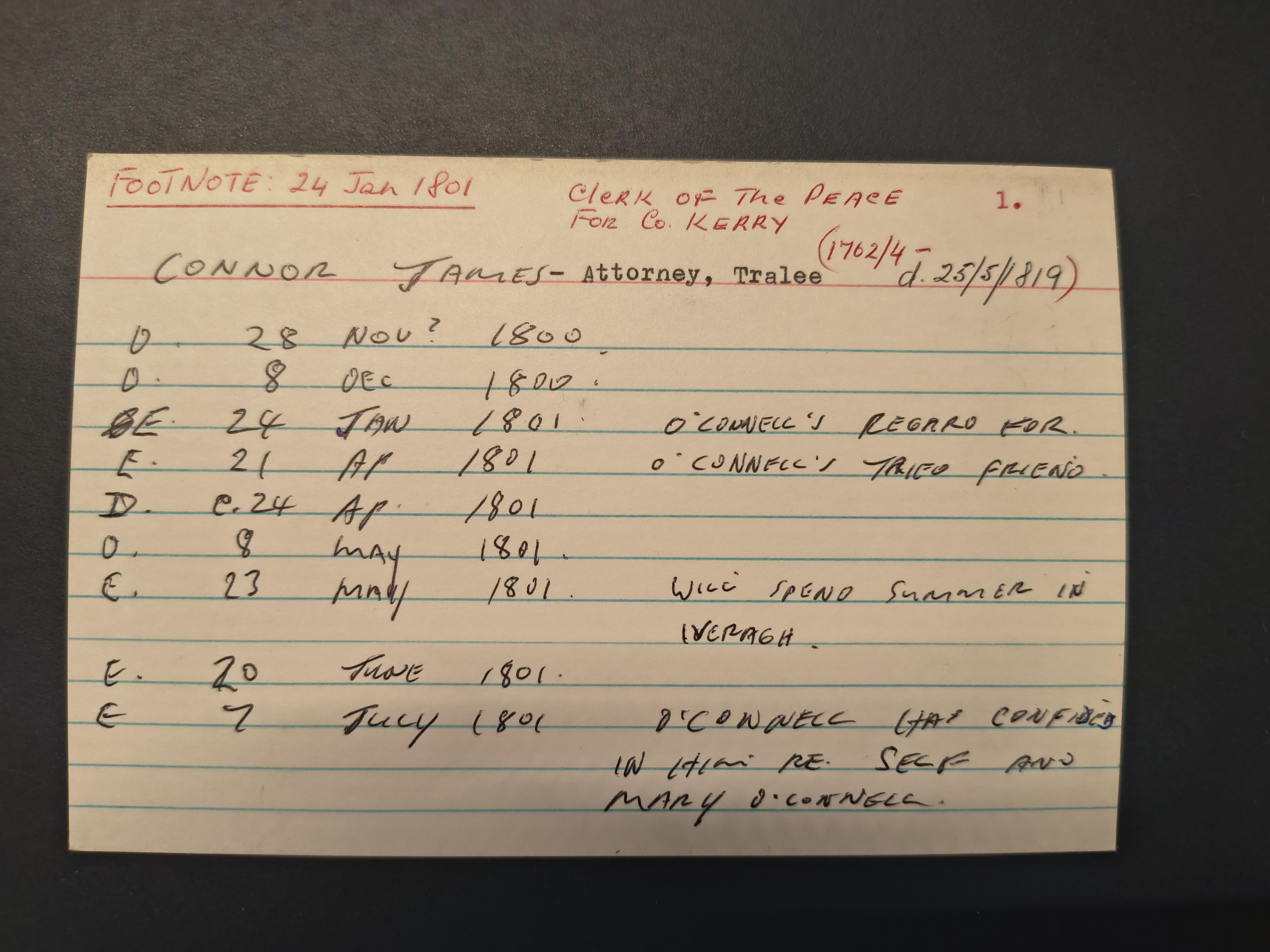 says the O'Connor family home as at 1837 (formerly the home of James O'Connor) was on Castle St, Tralee,