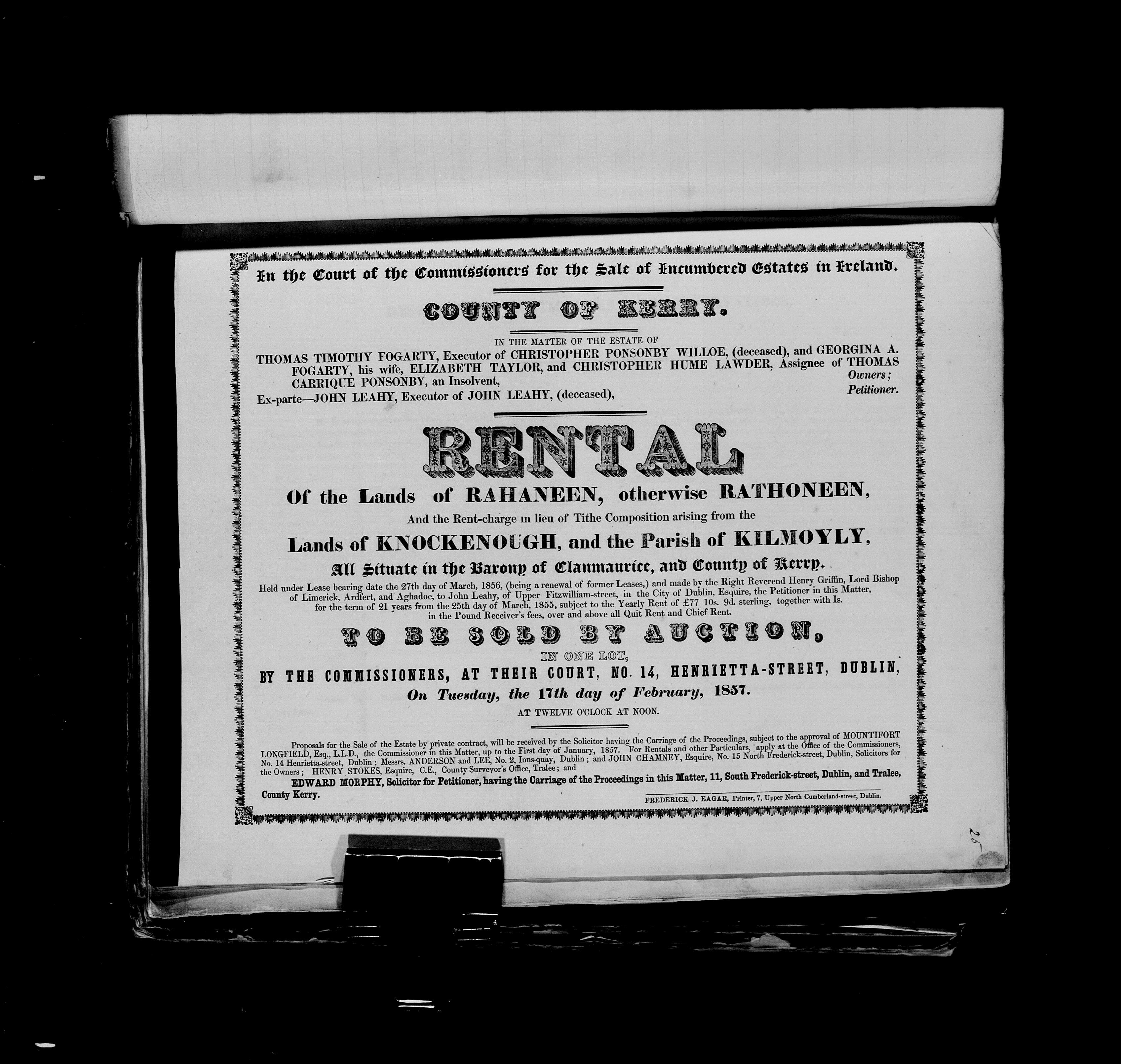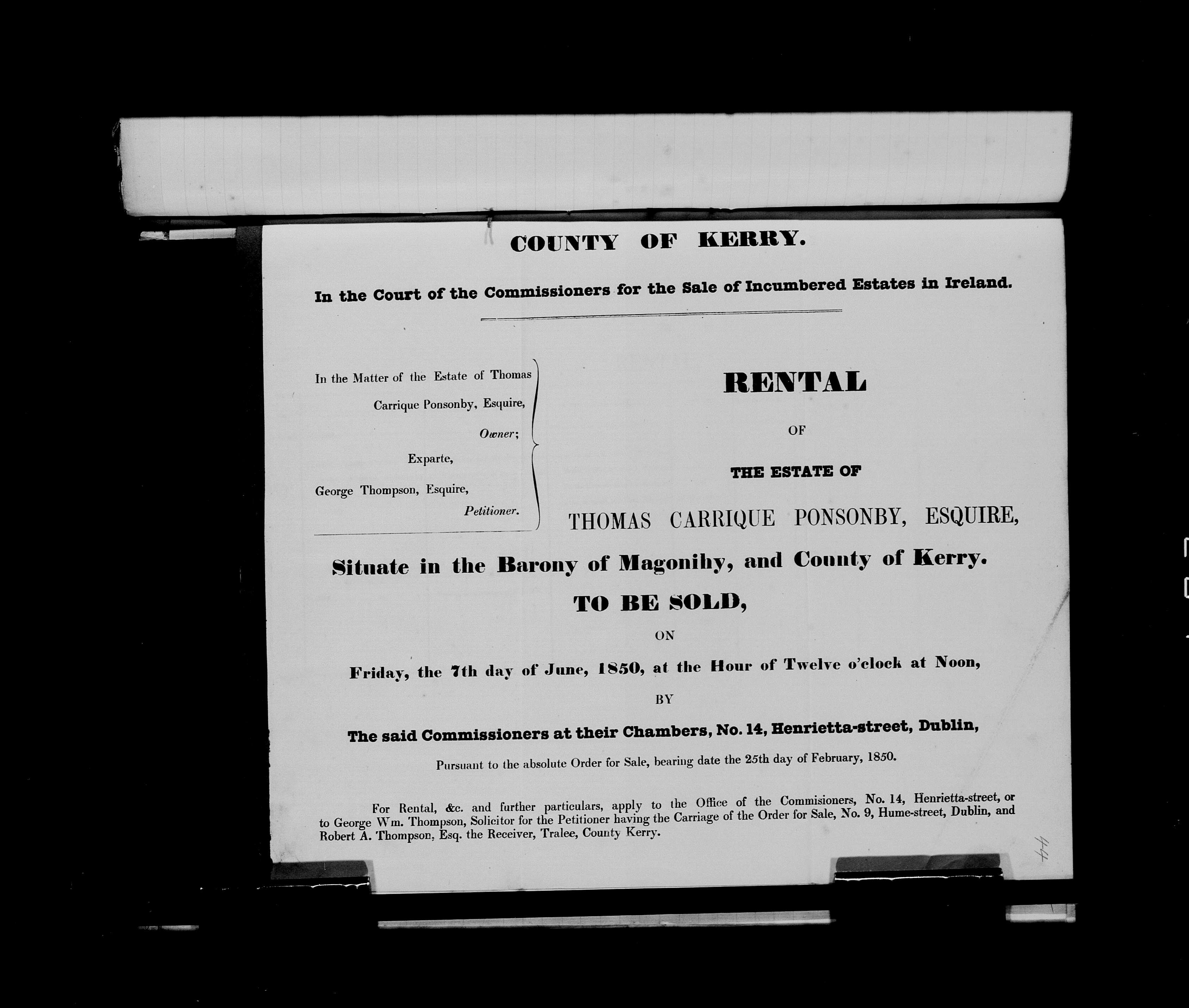 is about him selling off the massive Ponsonby estate of Kilflyn, and debts.