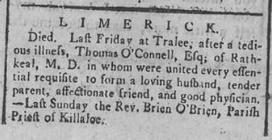 She mar 1792, Tralee, to James O'Connor [or Connor].