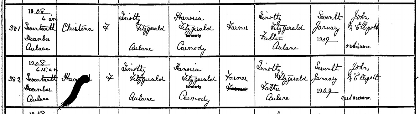 He mar 27 February 1908 to Hanoria Carmody [born 19 May 1877].