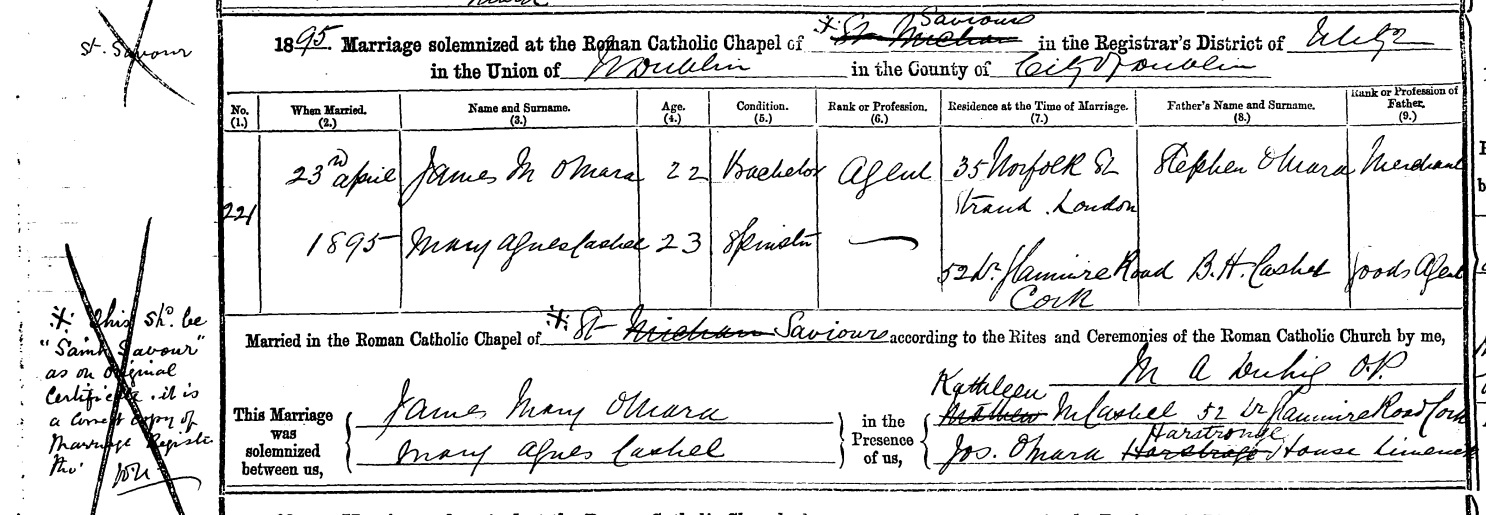 James O'Mara in London paying secret visits to Agnes Cashel in Ireland in 1893-95.