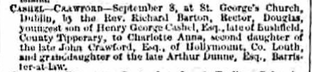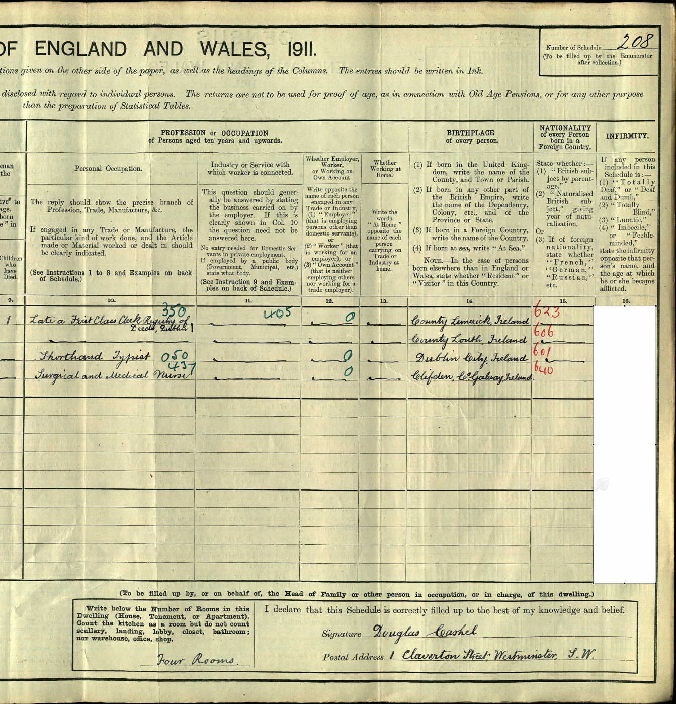 Living 4 [think Drumcondra Rd], N Dublin, at birth of Douglas 1873.