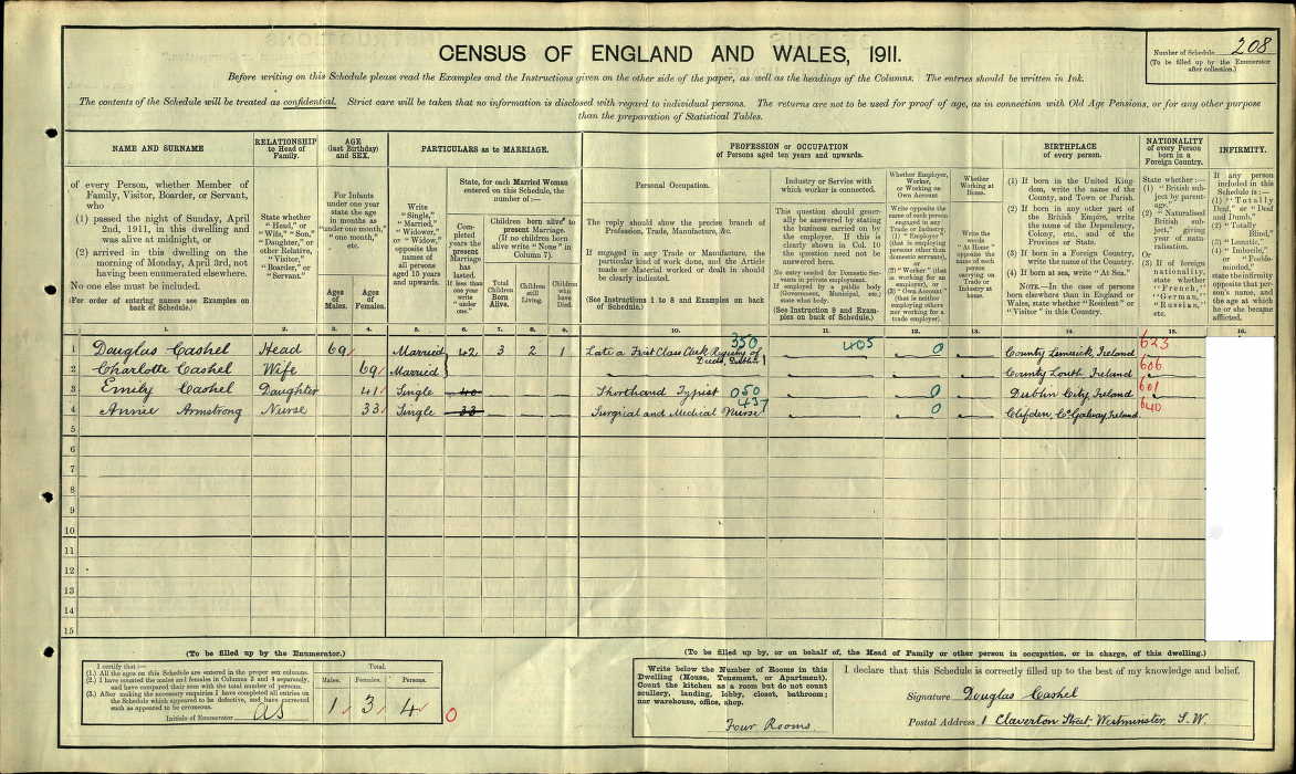 Douglas and Charlotte had issue (1911 census shows this is complete list of children):
