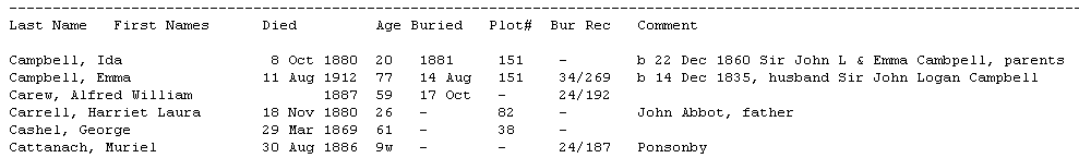 (information from burial register and gravestone inscriptions).
