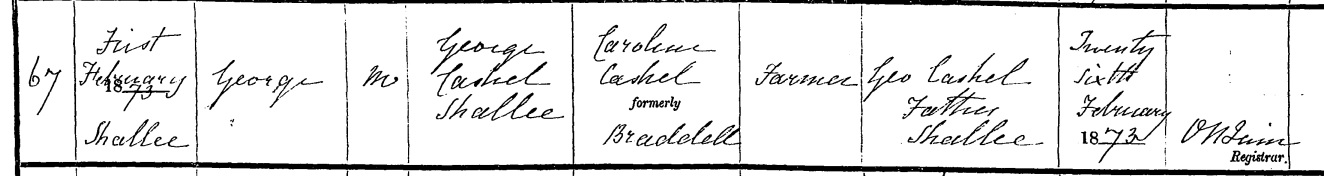 it is the brother of Eleanor and Bessie, George Cashel of Shallee (bapt 1843).