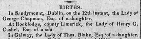 Children born at Rock Lodge, Co.Limerick,