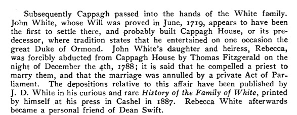 Rebecca White, the daughter of John White of Cappaghwhite.
