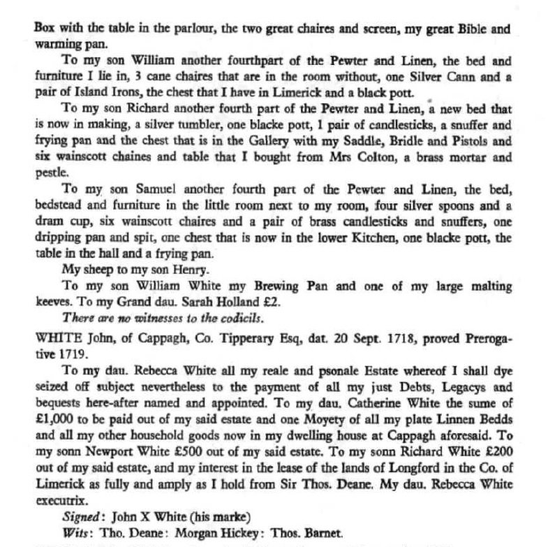 - History of the Family of White of Limerick, Knockcentry, Cappaghwhite, Lisowen, Kilmoylan, etc.,