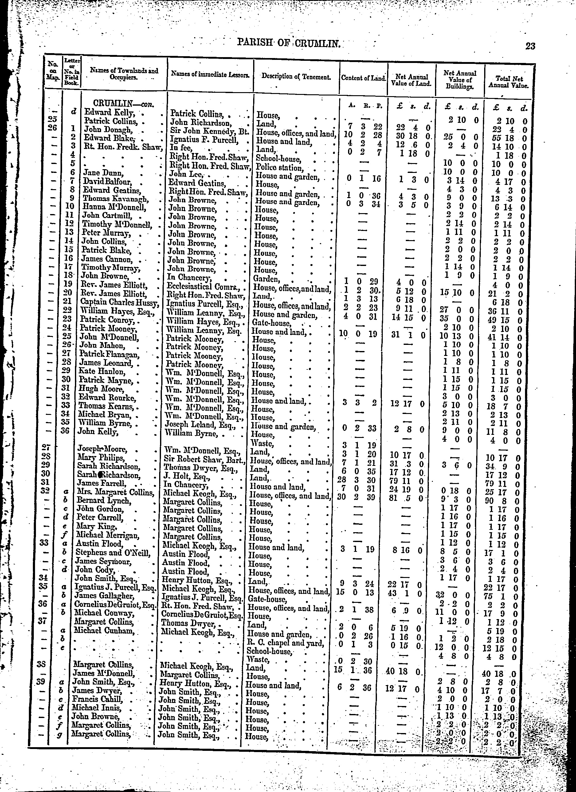 - A map of part of James Donough's Land near Crumlin held under the late Francis Purcell, Surveyed by John Longfield, 1816.