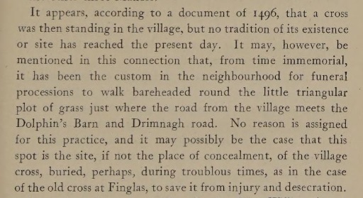 This says that a document of 1496 suggests a cross then stood in Crumlin. But does not name or reference the document.