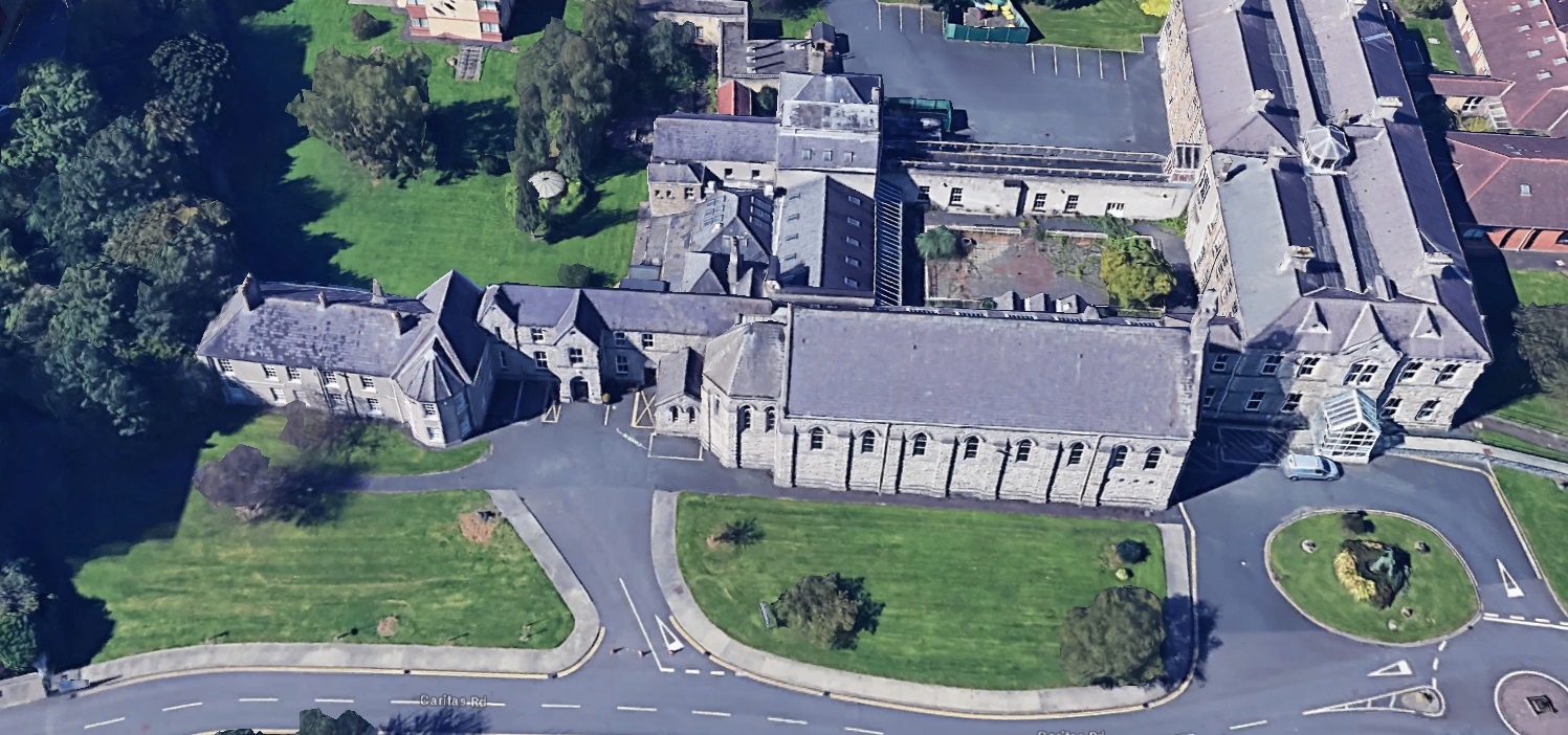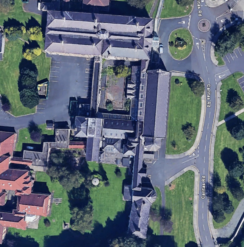 Site of castle is around the N end of the courtyard of St.Mary's School for the Blind.