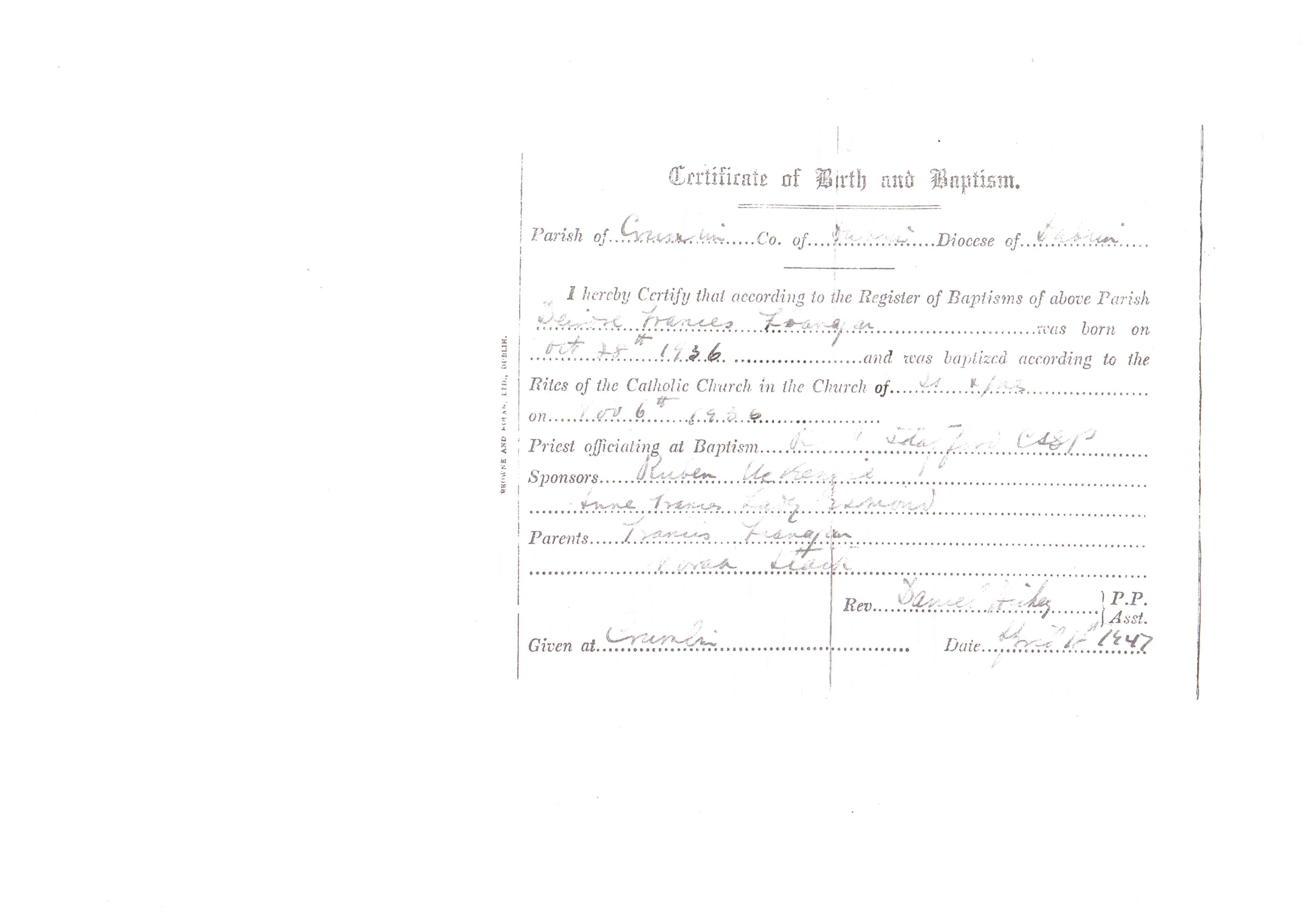 When Frank left the Jesuits in apparently 1907, Gogarty is said to have put a notice in the social column of the