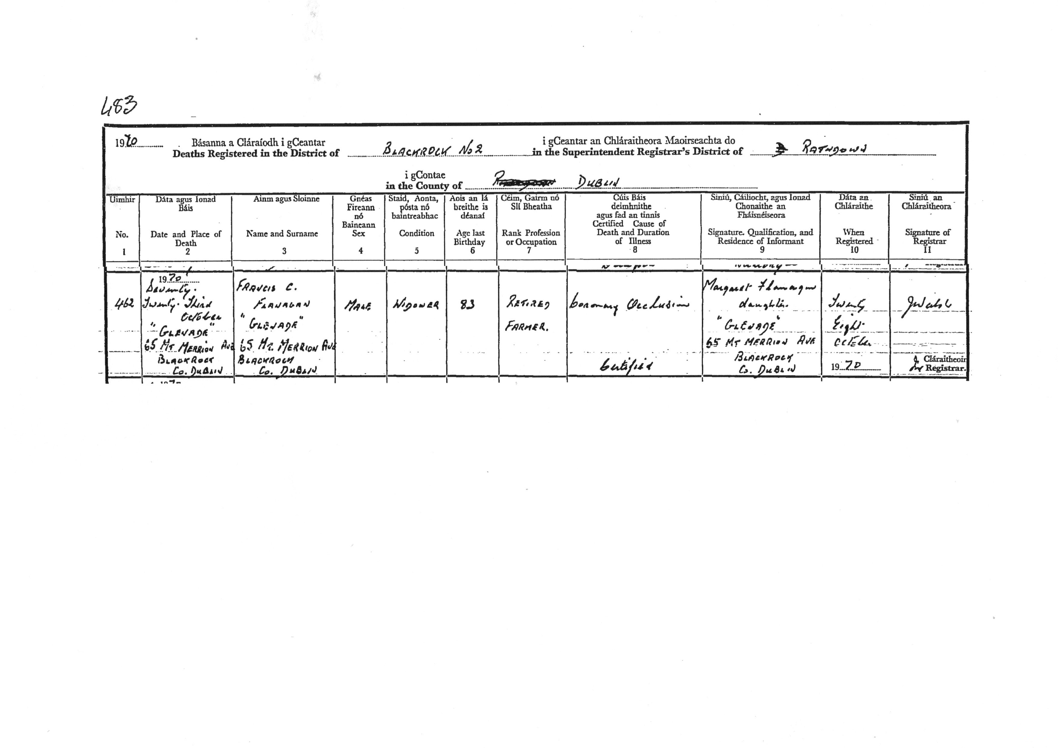 Fri 23 Oct 1970, "Glenade", age 83 yrs.