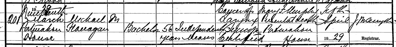 recalled Michael Flanagan living at Portmahon House in the 1920s