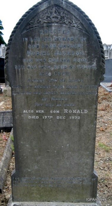 "Erected | In Loving Memory of | our dear mother | MURIEL JACKSON | who