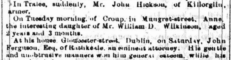 died Mungret St, 26 Jan 1867, aged 3 years,