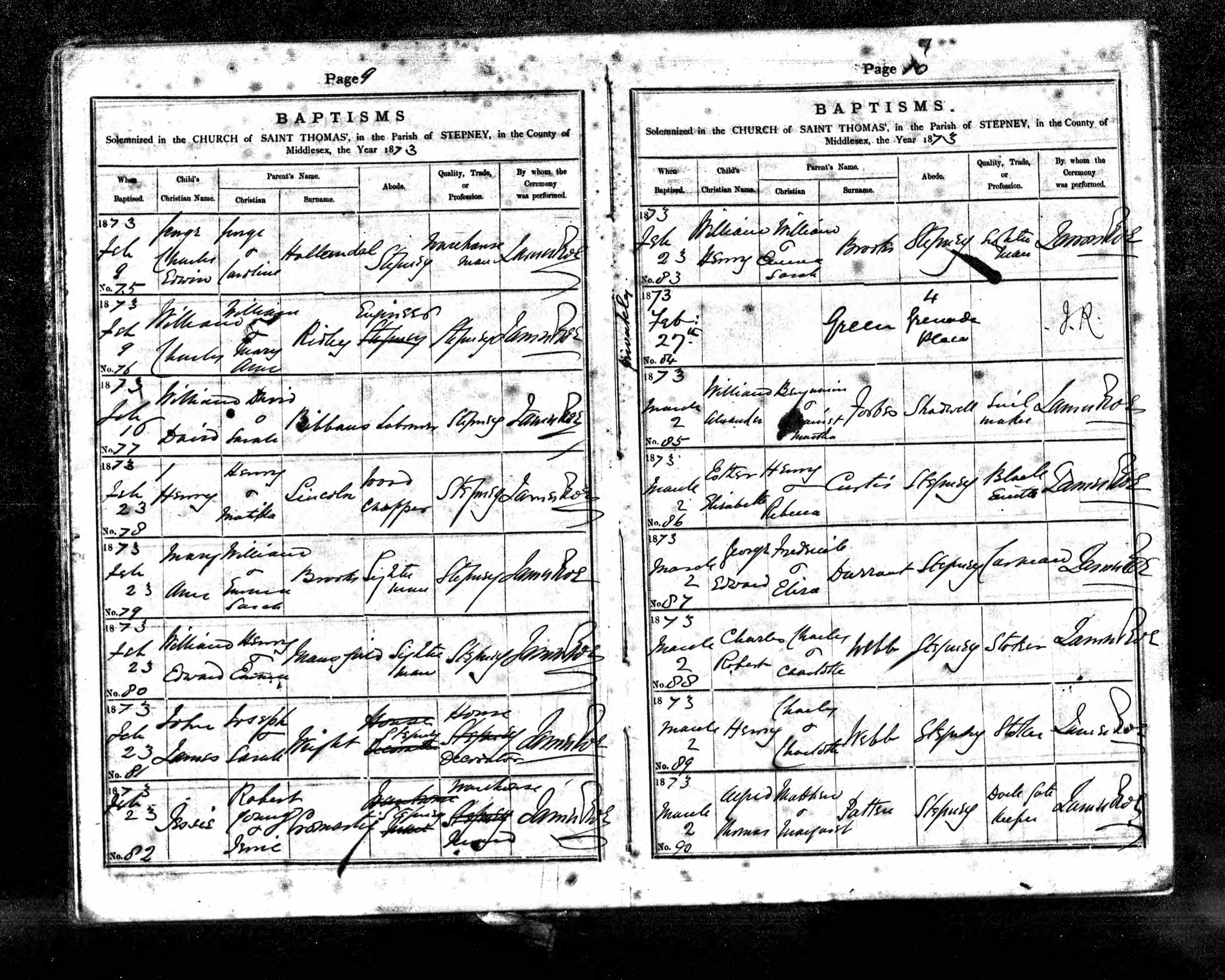 bapt 9 Feb 1873, St.Thomas, Stepney, London.