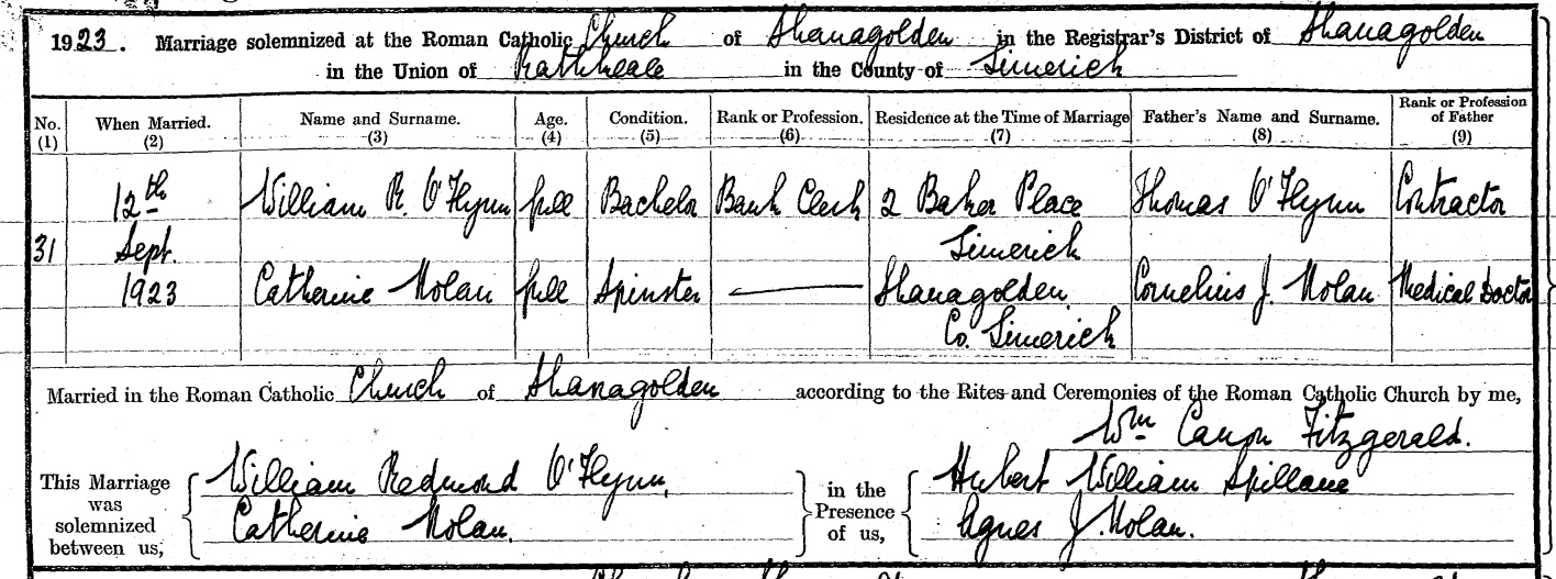 "Miss Mary Nolan, of Shanagolden" is listed as cousin (should be dau of cousin) of