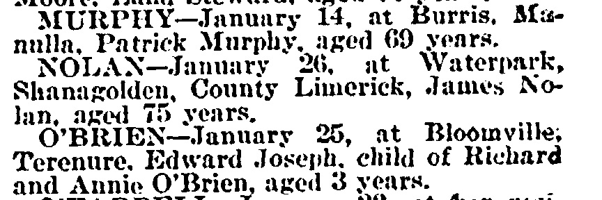 He died Waterpark, 26 Jan 1897, age 75 [death notice]