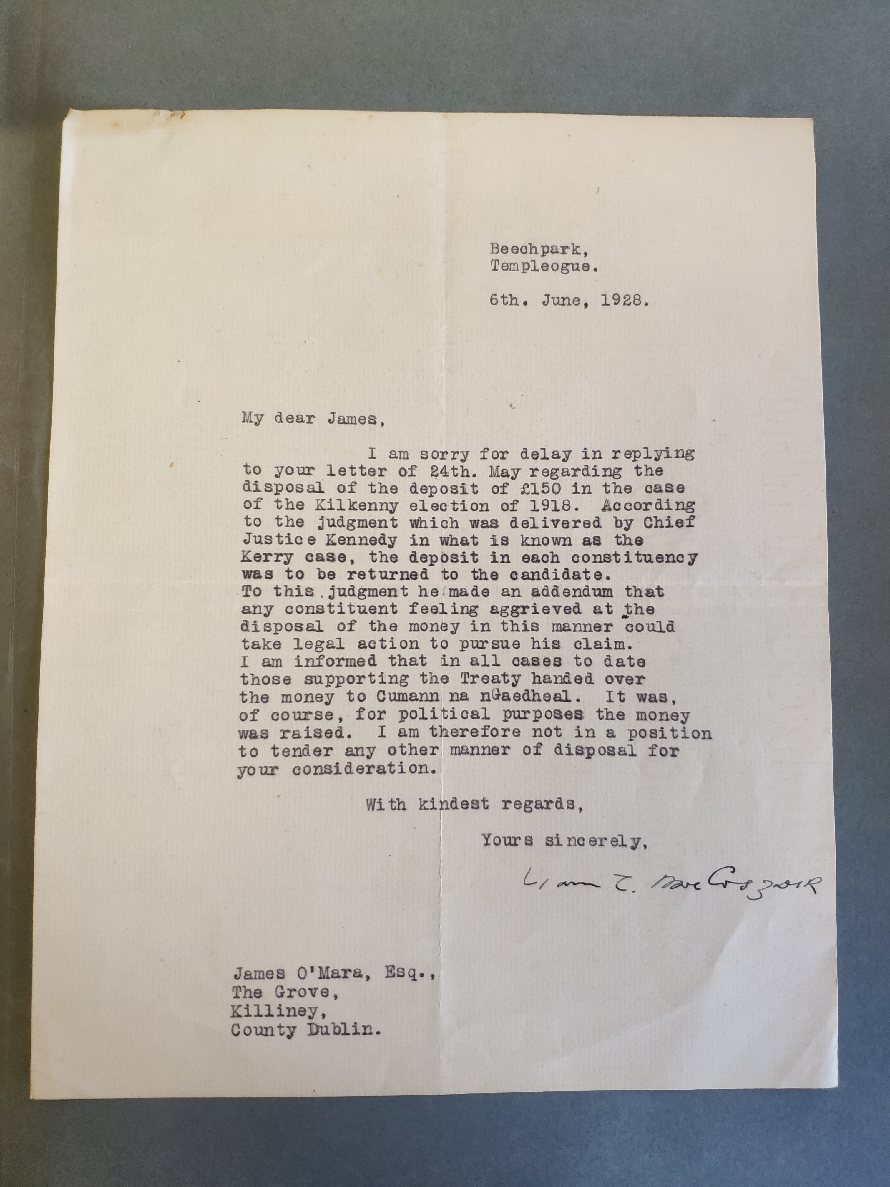 Correspondence of James O'Mara and other items relating to political matters, 1922.