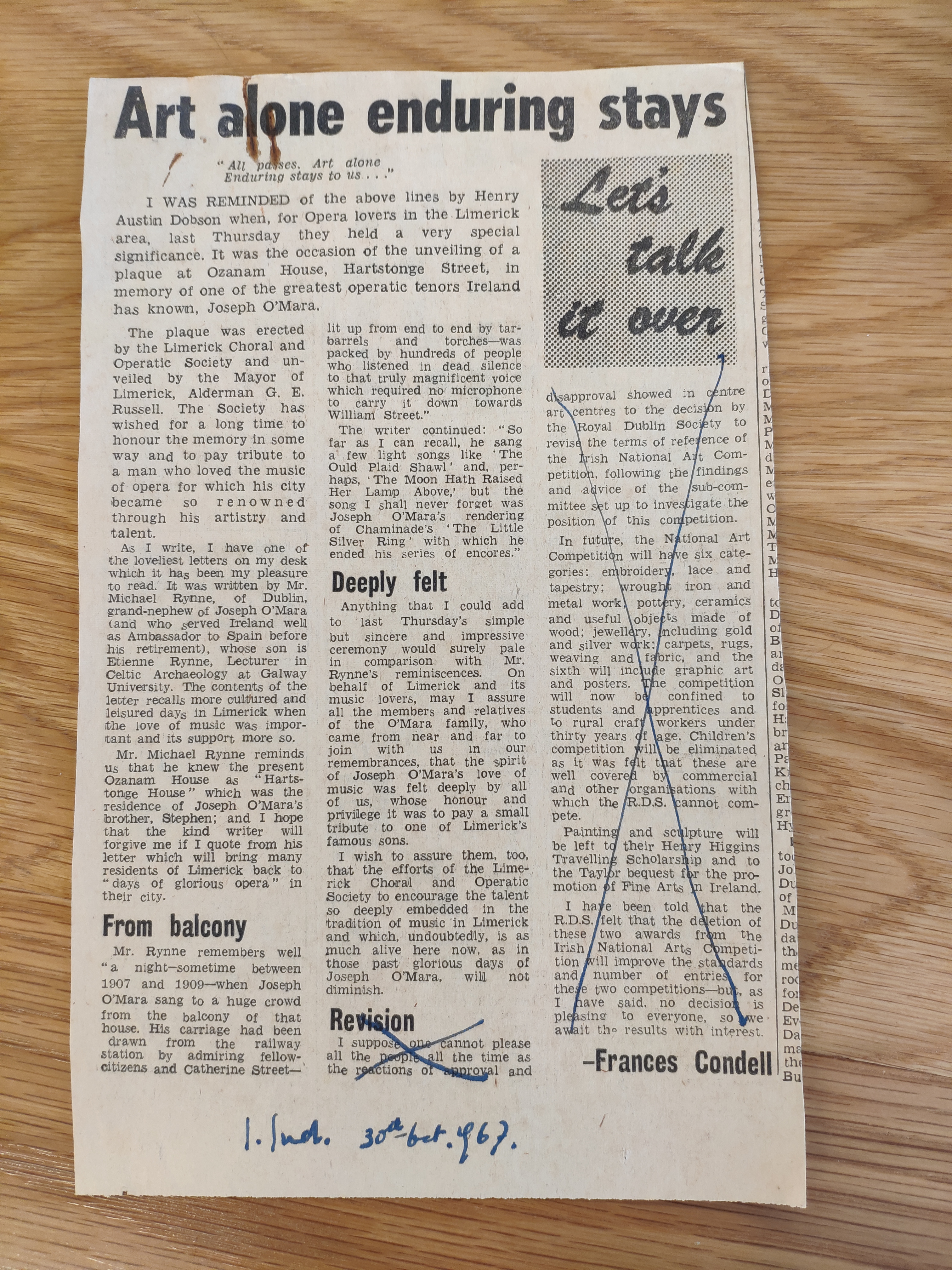 The balcony is the balcony that Joseph O'Mara apparently sang from, probably in 1908.